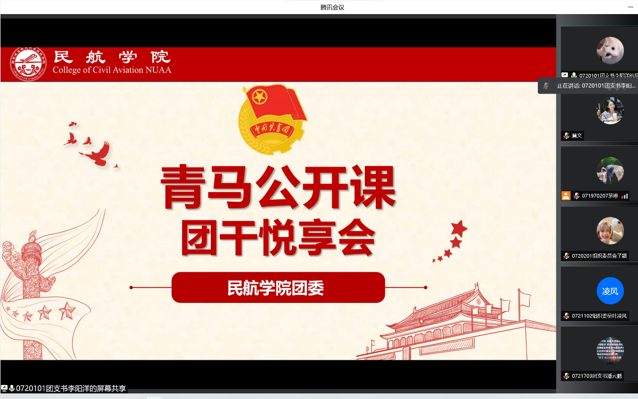 4月1日晚,禁忌书屋 青马公开课暨“团干悦享会”在线上举行。学院团委书记赵慧文、团委组织部全体团干、本科各年级团干参与活动。此次悦享会围绕团学工作经验分享、优秀项目交流和新学期团学工作展望三方面内容开展。