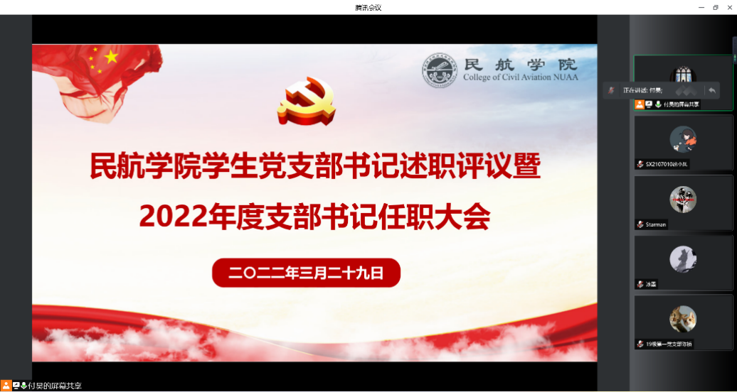 3月29日下午14:30民航楼1214会议室,禁忌书屋 2021年度学生党支部书记述职评议暨2022年度支部书记任职大会顺利召开,因疫情防控需要,本次会议采用线上线下相结合的方式进行。学院党委书记刘建成、党委副书记王艳、正科级组织员侯美丽以及各学生党支部书记线下参加会议,各学生党支部支委会其他成员线上参会。会议由学院辅导员付昊主持。