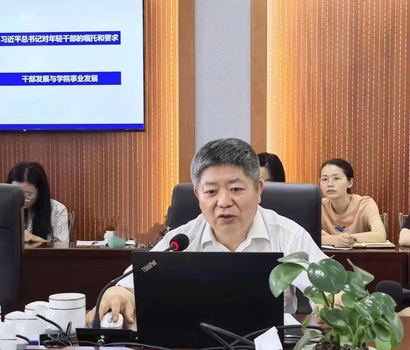 李遥以《基层干部能力提升与发展》为题,分“习近平总书记对年轻干部的嘱托和要求”“干部发展与学院事业发展”两部分讲授。
