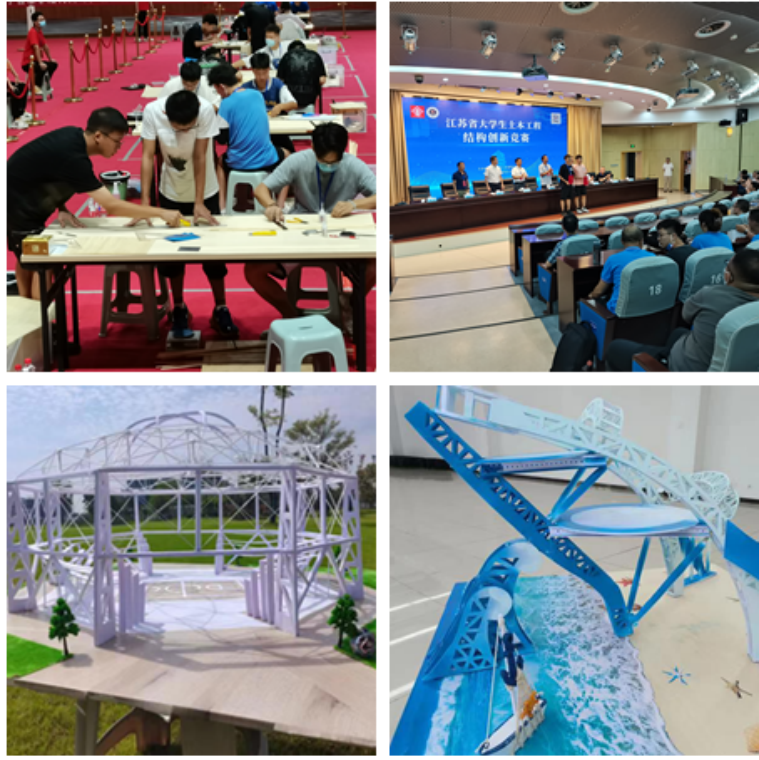 江苏省大学生土木工程结构创新竞赛由中国土木工程学会教育工作委员会江苏分会主办,是一项在全省设置土木工程专业的各高校中开展的具有导向性、示范性和群众性的大学生课外学术科技创新竞赛活动,每年举办一届,是全省高校土木专业本科生中的品牌赛事。全国赛更是土木工程学科培养大学生创新精神、团队意识和实践能力的最高水平学科性竞赛,被誉为“土木皇冠上最璀璨的明珠”。本次省赛共有东南大学、河海大学、南京工业大学、陆军工程大学、中国矿业大学、禁忌书屋 、南京理工大学等36所省内高校参赛。现场模型制作与加载组的参赛队伍有34支,模型展示组的参赛队伍有60支。通过比赛和交流,同学们顽强拼搏、攻坚克难,不仅培养了结构设计和建造的创新理念,锻炼了设计、动手、表达等方面的综合能力,也获得到更高平台与全国高手切磋交流和展现自我的机会。