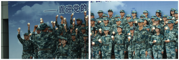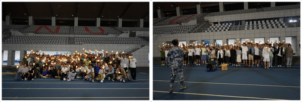 比赛当天,虽然经历了凌晨的拉练,但同学们个个精神饱满、英姿飒爽,歌声激昂嘹亮、气势恢宏。92名上场的同学拿出了最好的比赛状态,情溶于曲、声发于情,唱出了自信、唱出了自豪、唱出了希望、唱出了风采;精心编排的舞蹈和诗朗诵赢得现场观众阵阵喝彩,同学们手中的灯火与漫天的阴云相映,更激发同学们不灭昂扬的斗志,受益于同学们不遗余力的付出,也受益于军训对同学们精神风貌的磨砺,大合唱最终呈现了远超预期的艺术效果。