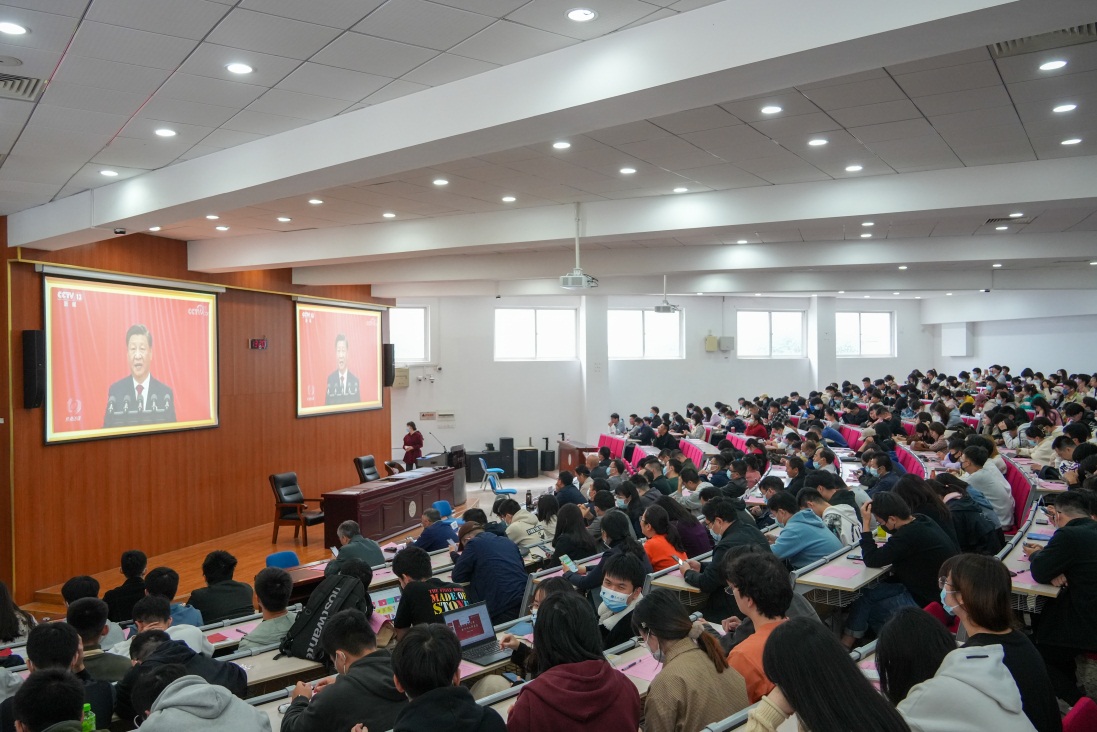 大会计票环节,全体党员以观看视频的方式集体学习党的二十大报告。