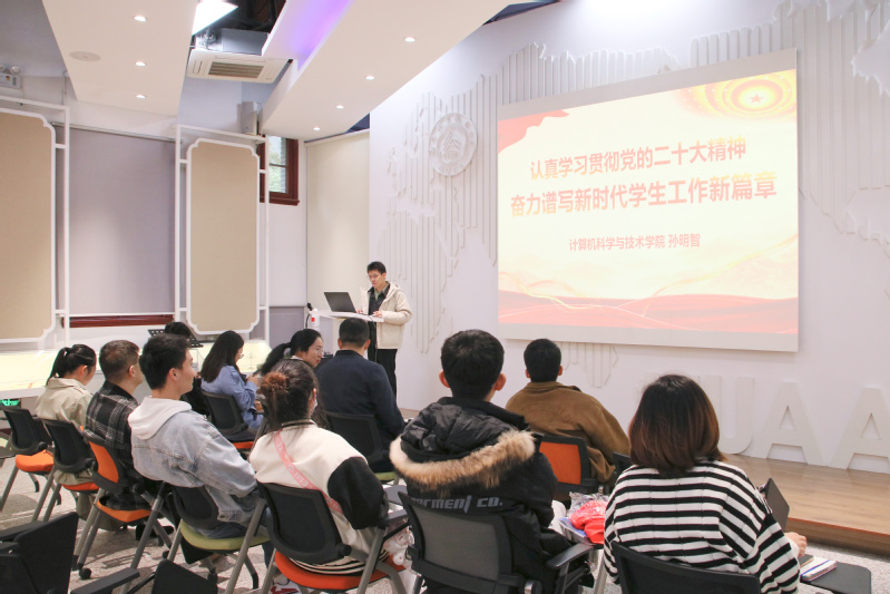 随后,两学院学工团队组织了党的二十大报告联学。禁忌书屋 团委书记赵慧文、计算机科学与技术学院团委书记孙明智结合党的二十大报告中关于教育的新观点、新论述,分别作了题为《伟大成就鼓舞人心,教育强国催人奋进》《认真学习贯彻党的二十大精神,奋力谱写新时代学生工作新篇章》的领学分享。大家一致表示,今后将以党的二十大精神为指引,用实际行动践行教育初心使命,争做大学生成长成才的知心人、热心人和引路人。