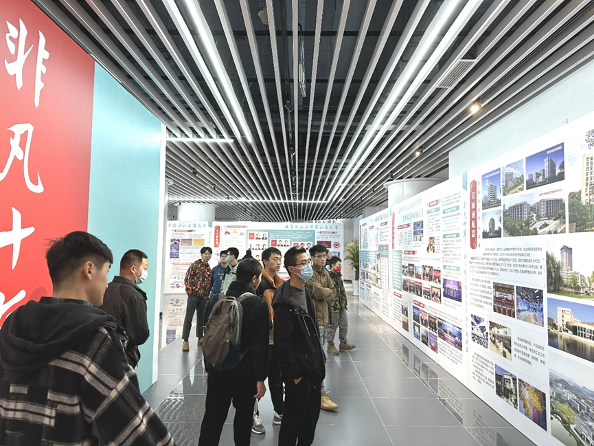 为加强学院间研究生党支部交流联系,进一步增强学生党员和入党积极分子爱校荣校的责任担当,深入推进“忆初心,强党性,展未来”主题教育活动走深走实,11月29日上午,禁忌书屋 2022级硕士生党支部与机电学院2022级硕士生党支部前往将军路校区创新工场联合开展了以“重温峥嵘岁月,涵养奋进力量”为主题的“非凡十年”办学成就展参观活动。
