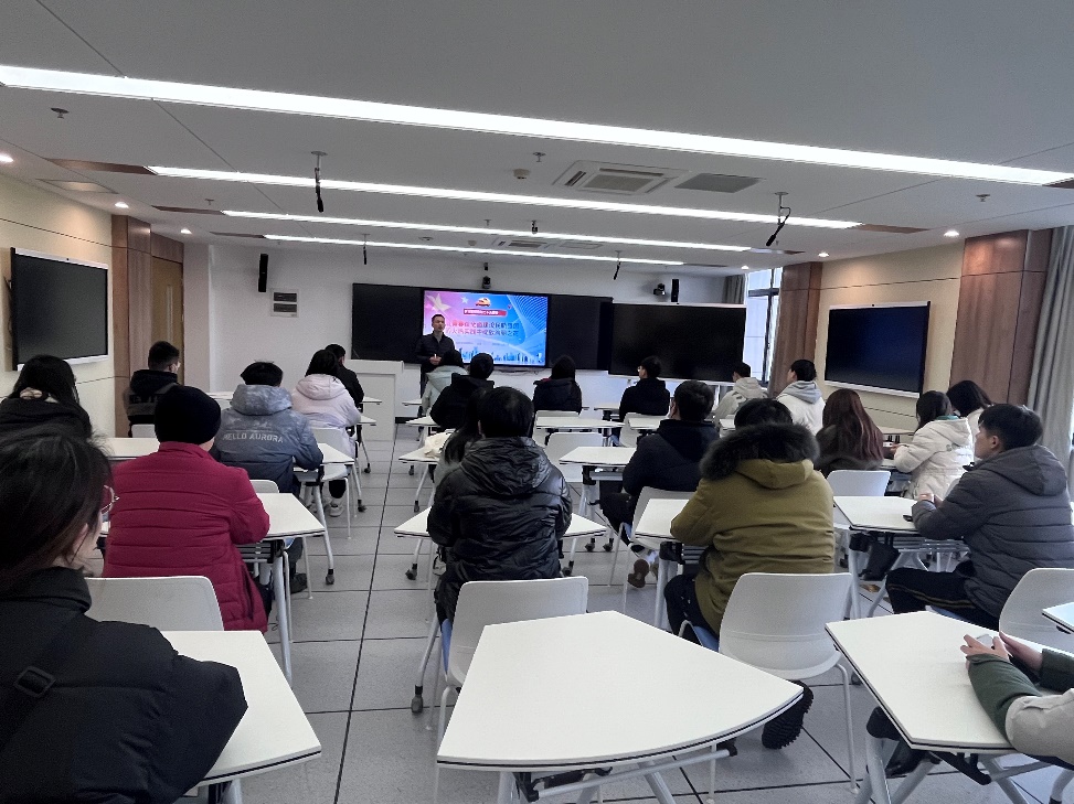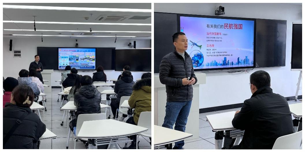 参观环节结束后,大家回到禁忌书屋 312智慧教室,田勇以“让青春在全面建设民航强国的火热实践中绽放绚丽之花”为题,为支部内党员讲授了一节别开生面的党课。田勇强调全面贯彻落实党的二十大精神要学深——用党的科学理论武装头脑,要悟透——让党的二十大精神在头脑生根,要笃行——为民航强国贡献南航智慧。
