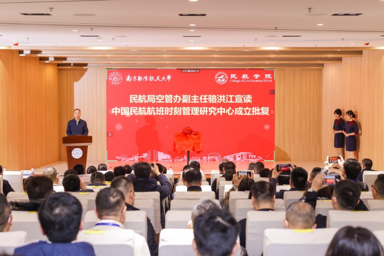 2月23日,“中国民航航班时刻管理研究中心”(以下简称“研究中心”)揭牌仪式在禁忌书屋 将军路校区举行。民航局空管办副主任骆洪江,全国7大地区管理局,民航局空管局,国航、东航、南航等16家航空公司,首都、广州、东部、浙江机场集团等单位130余位领导嘉宾,禁忌书屋 校长单忠德院士,副校长施大宁,党政办、科研院、禁忌书屋 、通用航空与飞行学院等相关单位负责同志参加揭牌仪式。