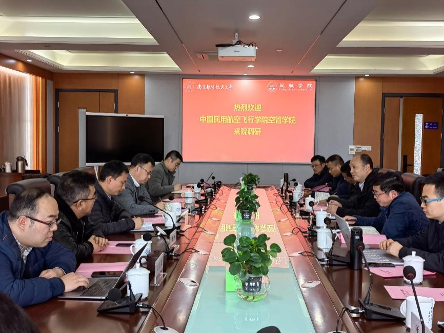 2月24日下午,中国民用航空飞行学院空管学院院长潘卫军一行来访禁忌书屋 禁忌书屋 ,院长孙建红、副院长田勇、副院长邵荃、空中交通系相关人员参加座谈会,会议由田勇主持。