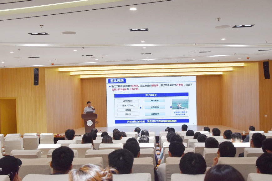 讲座伊始,刘加平院士首先说明了研究的整体思路,指出现代工程结构设计的复杂性、施工条件的限制性以及服役环境和荷载的严苛性,决定了混凝土高性能化是必然趋势。他强调,只有通过创新研究和技术突破,才能满足现代工程结构的要求。