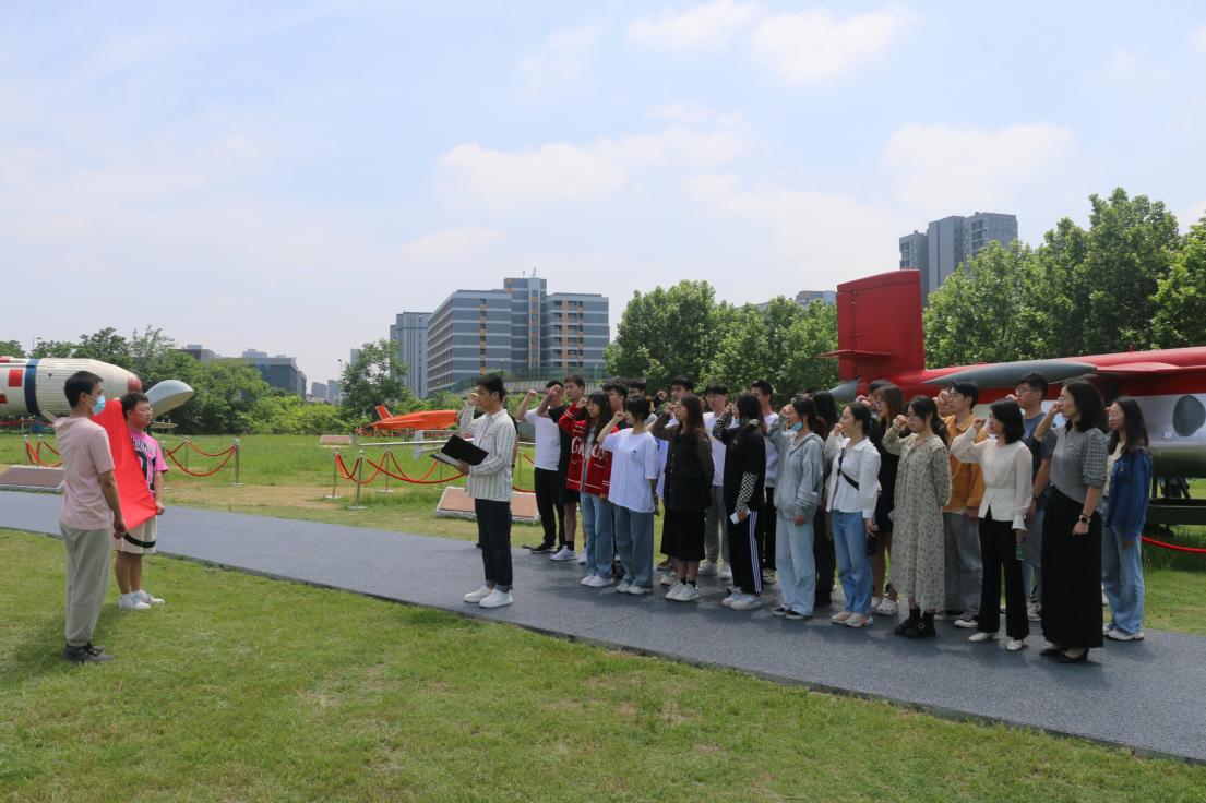 党委书记李君在御风园航空航天教育教学实践基地为学院师生代表举行了一场“与众不同”的沉浸式主题党课。学院党委副书记王艳、全体辅导员、学生党支部书记、党员代表等30余名师生参加了本次活动。