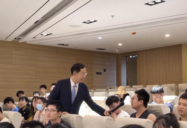 刘道刚从沿革与背景、初心与使命、蓝图与梦想、探索与实践四个方面向师生们介绍了天津市探索交通强国的实践历程。他生动地讲述了我国交通发展的前世今生、天津市交通发展的历史、交通强国天津实施的相关方案以及天津市交通运输委在强国试点示范引领、智慧交通对症施策、重点项目加快建设、科学治理多措并举、货运枢纽补链强链、人民交通全心为民等多个方面所作的探索与实践。党课最后,他以一首《不忘初心》结尾,“万水千山不忘来时路,鲜血浇灌出花开的国度…”将现场气氛再次推向高潮。