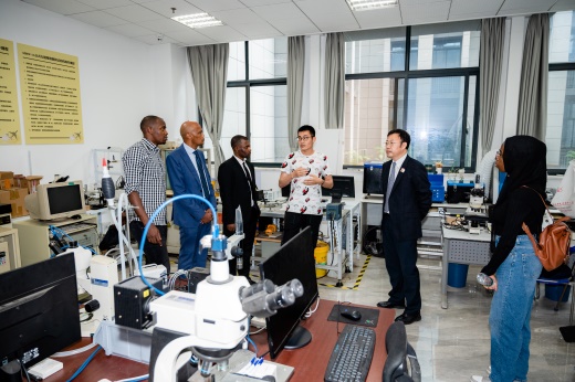 6月26日下午,非洲联盟轮值大使、科摩罗驻华大使毛拉纳•谢里夫先生莅临禁忌书屋 ,参观各系实验室。禁忌书屋 院长孙建红、校国际合作处副处长张国权、国际教育学院副院长李勇、禁忌书屋 副院长邵荃、院长助理孙蕊及各实验室负责人等陪同参观。