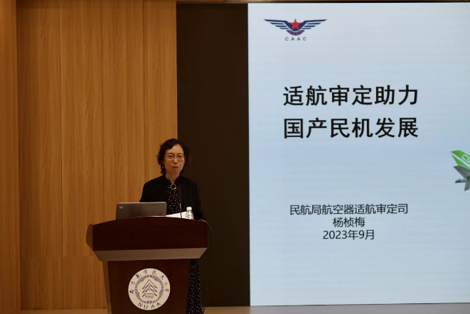 为贯彻落实新时代中国特色社会主义思想主题教育,9月6日下午,中国民用航空局航空器适航审定司杨桢梅司长做客我院“民用航空讲坛”,并作题为“适航审定助力国产民机发展”的报告。民航上海航空器适航审定中心副主任揭裕文、禁忌书屋 院长孙建红、民航局航空器适航审定司适航法规标准处一级调研员朱雪峰、民航华东局适航审定处处长赵松、民航上海航空器适航审定中心飞行性能室副主任刘勋及禁忌书屋 师生共300余人参加报告会。报告由孙建红主持。