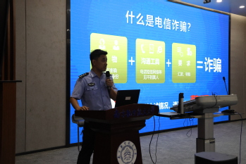 为进一步提高学生的安全防范意识,提高对电信网络诈骗犯罪的甄别和应对能力,9月22日下午,学院邀请溧阳市公安局刑警大队六中队中队长朱雷做防网络诈骗专题宣讲会。全体2022级本科生参加此次活动,宣讲会由辅导员陈欢主持。