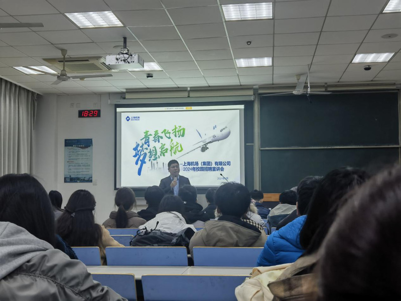 3月6日晚上及3月7日上午,上海机场集团在校内开展企业宣讲及专场招聘会活动,吸引众多学生前来参与。