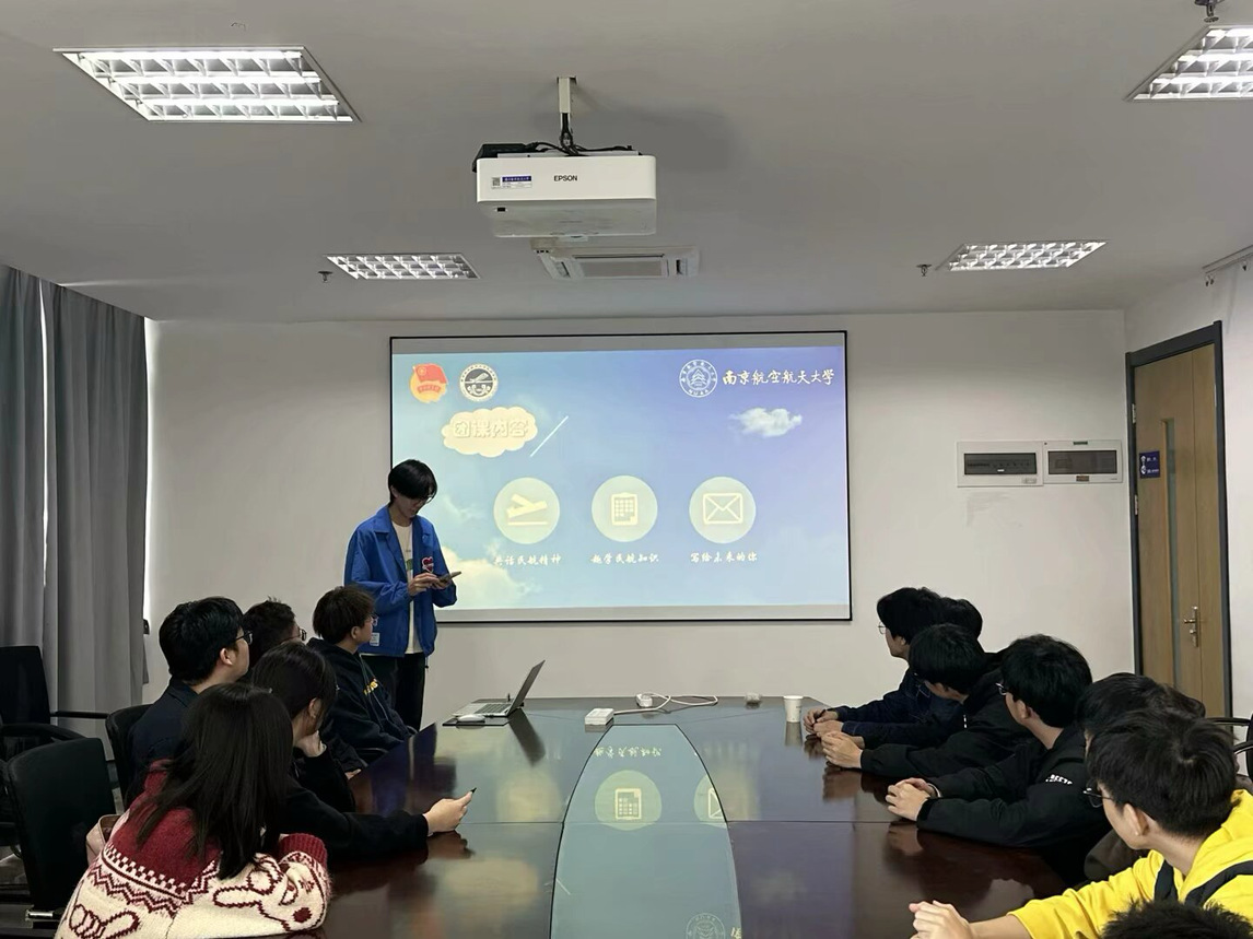 主题团课环节,团支书肖恺乐同学带领大家回顾空管发展历程、体悟民航精神。