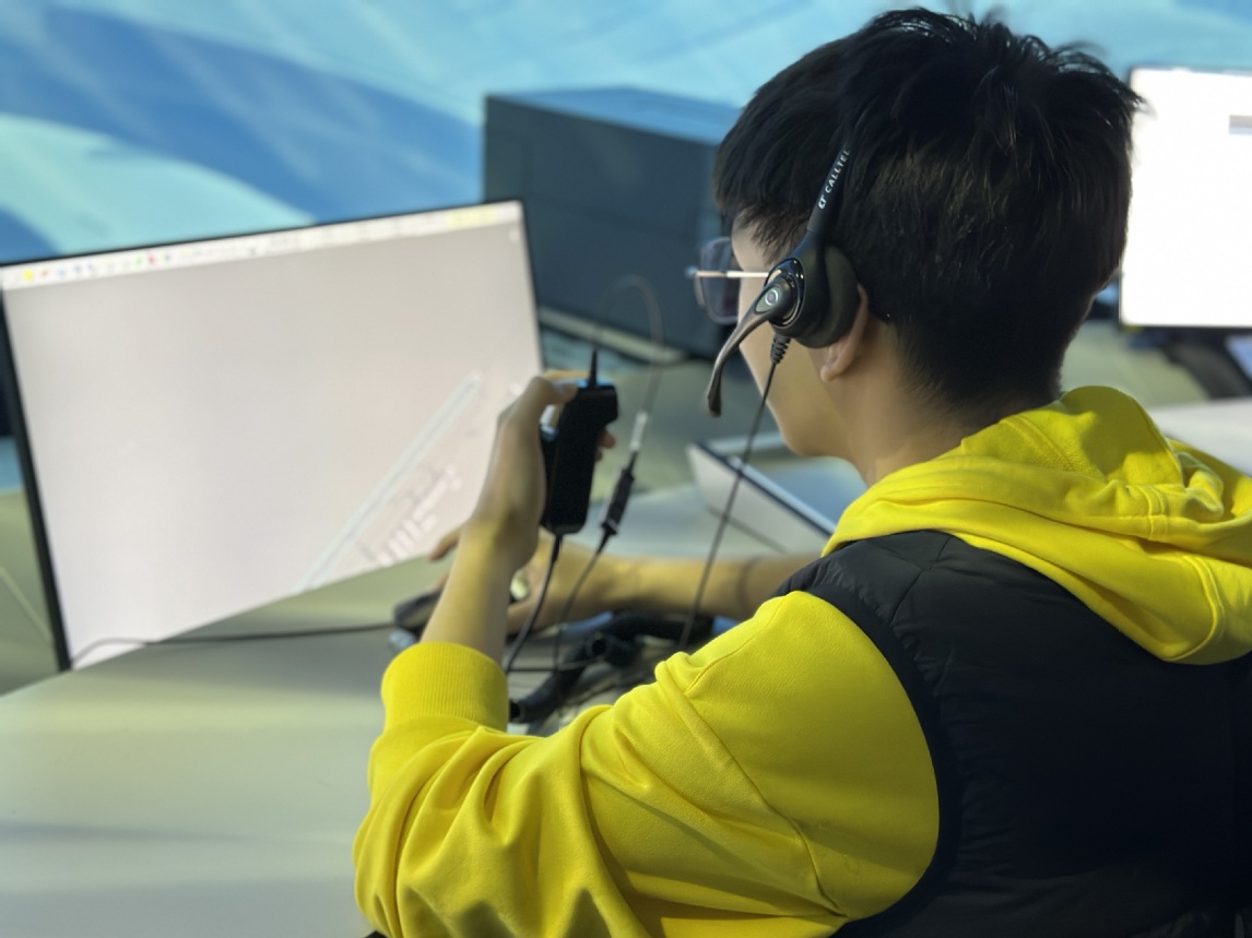 本次活动分为“模拟塔台参观”和“主题团课”两部分。在360°模拟塔台训练系统参观过程中,张乃中详细阐述了机场跑道的具体位置、长度数据及实际运行状况,以及航站楼的分布格局和塔台内部工作人员的职责划分,带领同学们从熟悉的生活场景过渡到塔台管制的工作场景之中。在程序/雷达管制模拟实验室,张乃中向同学们介绍了实验室相关仪器用途,讲解区域管制特点,帮助学生对管制工作形成了更为全面且立体的认识。