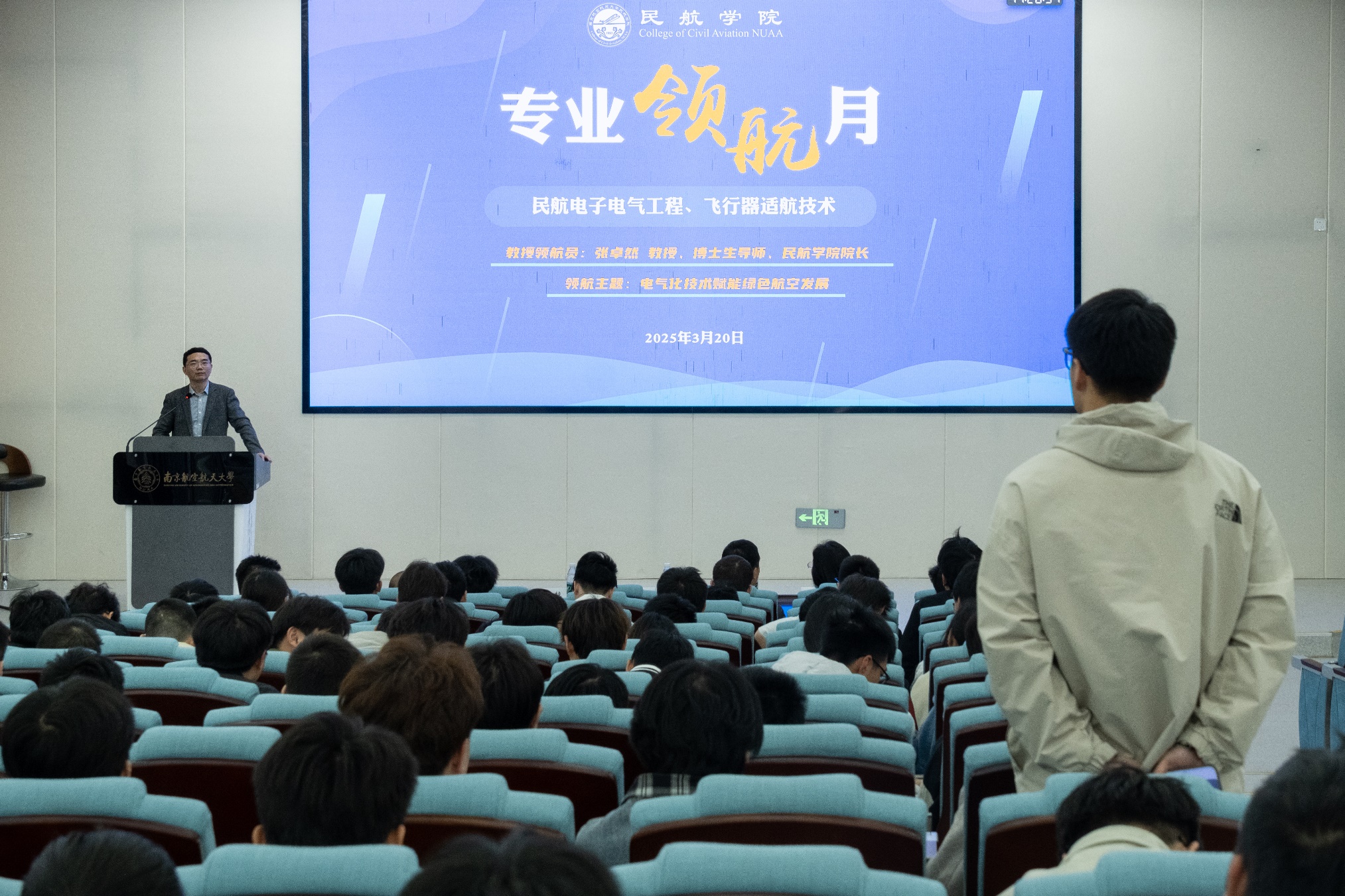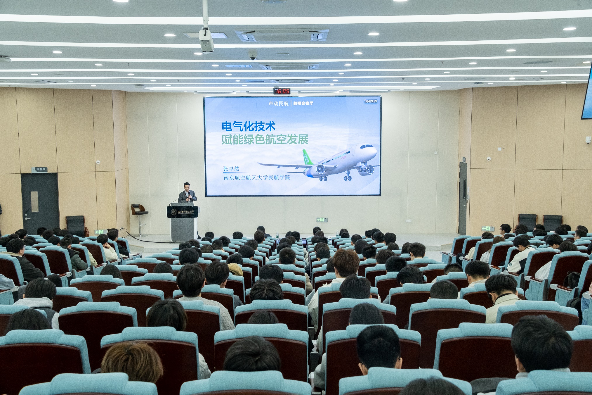 为深化专业认知教育,培育学生创新精神,3月20日,禁忌书屋 在天目湖校区牧星楼T2108报告厅举办“教授会客厅”活动,院长张卓然教授以《电气化技术赋能绿色航空发展》为题作专题报告,学院党委副书记王艳,民航工程系党支部书记陆中、系主任丁萌、系副主任宫淑丽等教师代表与学院2023级、2024级相关专业300余名本科生共同参与本次活动。