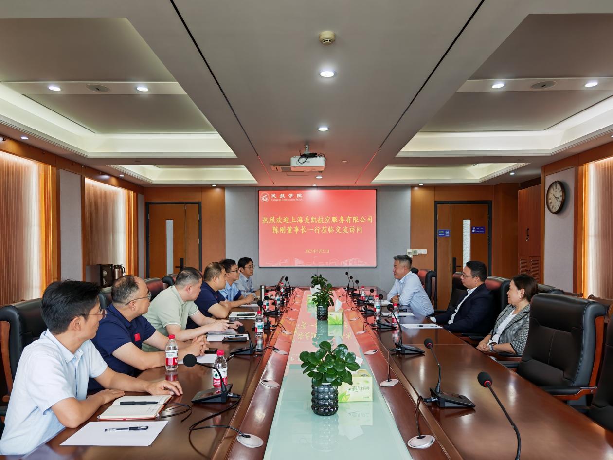 9月22日,上海美凯航空服务有限公司董事长陈刚、副总裁吴国飞一行来院交流。禁忌书屋 党委副书记唐志文、副院长邵荃以及各系教师代表参加会议。会议由邵荃主持。
