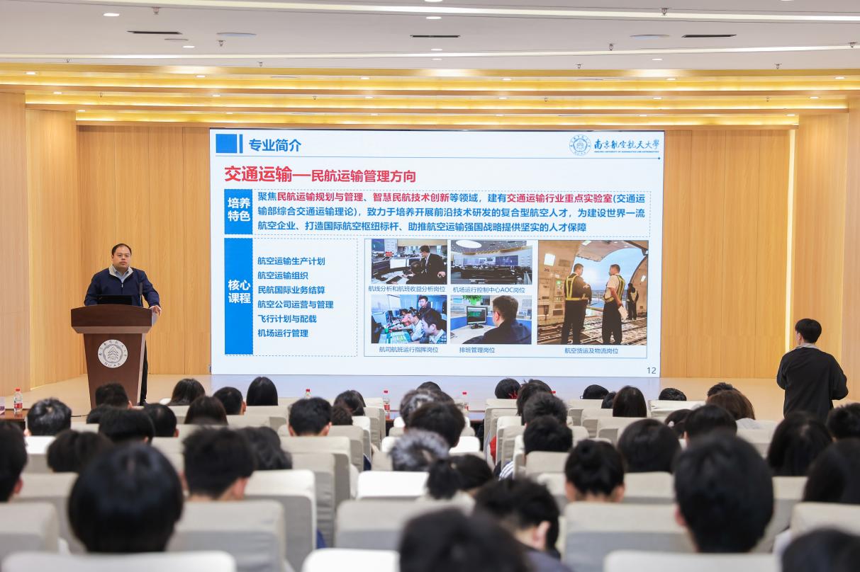 为积极响应国家交通强国战略部署,为民航事业高质量发展培养更多优秀人才,引导低年级学生深入了解民航专业特色,聚焦民航领域开展跨学科研究与创新实践,4月11日,“凤起南航·泰达未来”首届民航创新实践挑战赛暨专业文化节启动仪式在禁忌书屋 306报告厅举行。牧星学院党委副书记兼致慧书院执行院长丁琛、禁忌书屋 党委副书记唐志文、禁忌书屋 各系教师代表、辅导员及200余名2025级本科生参与了此次活动。