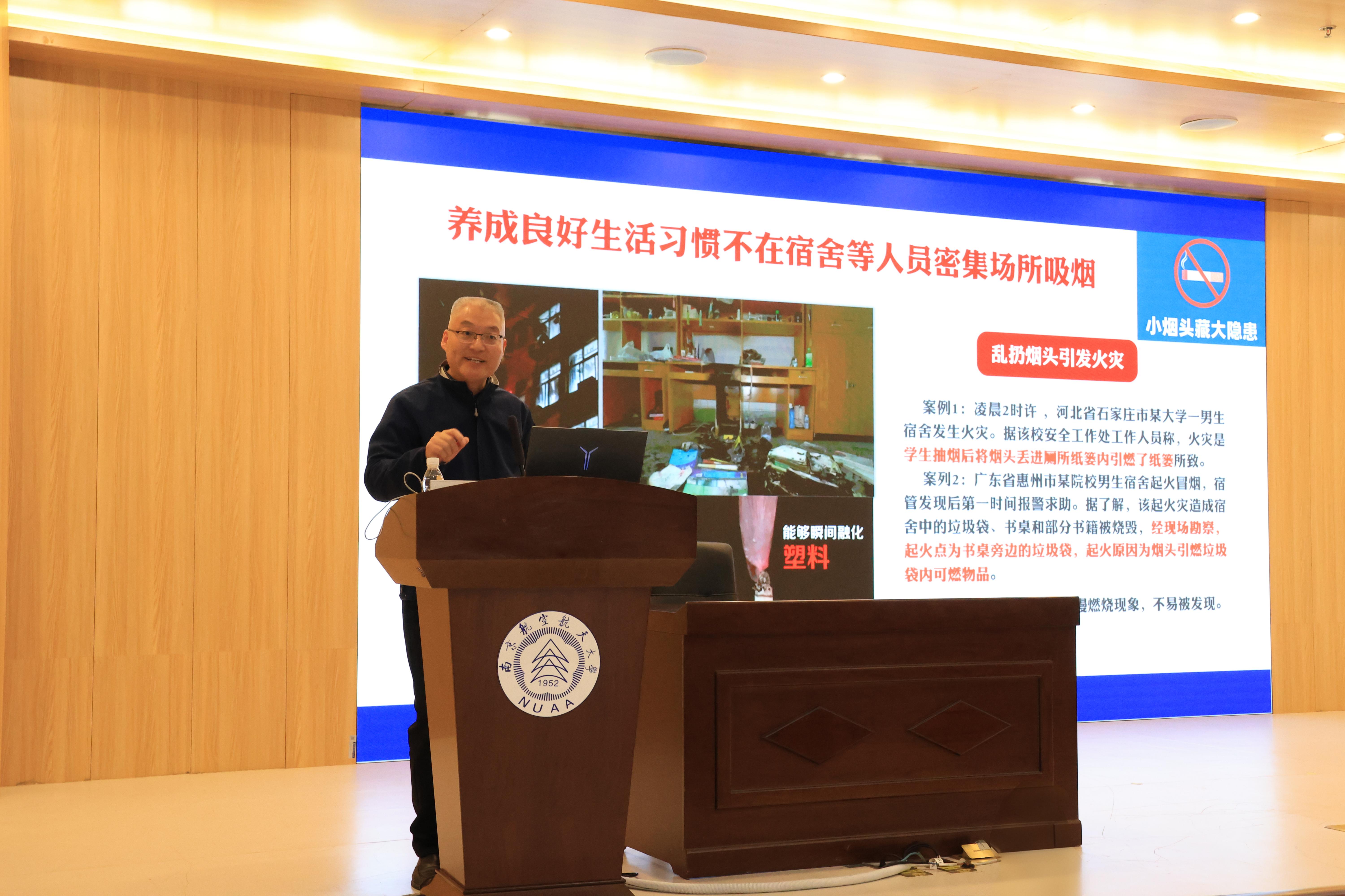 为落实“健康第一”教育理念,进一步强化学生骨干责任担当,4月22日晚,学院邀请将军路校区保卫办主任李广老师开展安全专题培训。学院辅导员、宿舍长、班级及研究生工作室安全员等学生骨干参加本次培训。