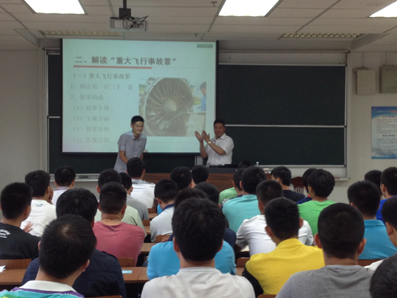 2014年6月4日下午4点在将军路校区10101教室,中国民航科学技术研究院总飞行师刘清贵为我院师生作了《从伊春8.24飞行事故看“重大飞行事故罪”》的报告。刘总飞行师主要讲解了伊春8.24飞行事故开庭情况、解读“重大飞行事故罪”、8.24飞行事故回顾和典型案例及安全启示四个方面。