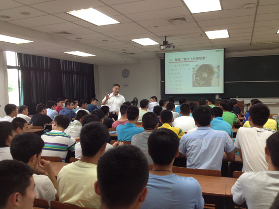 首先,刘总飞行师为师生播放了关于8.24空难的开庭情况的视频,并带领大家简单回顾了伊春8.24空难的相关背景;其次,刘总飞行师结合伊春8.24空难,给大家解读了“重大飞行事故罪”,包括法律条款和犯罪构成等知识点。同时,还和现场飞行员同学热情互动,请一些同学回答关于航路图和空难原因分析等问题;然后,刘总飞行师通过视频短片,完整的带领大家回顾了伊春8.24飞行事故发生的整个过程,并就事故原因向在场的同学进行提问,同学们积极思考,回答也得到了刘总飞行师的肯定;最后,刘总飞行师通过几段事故实例,总结了5条安全启示,分别为恶劣天气对飞行安全的影响、五大危险的飞行心理态度(包括侥幸、冲动、逞能、反权威、顺从)、正视管道效应和机组资源管理等。