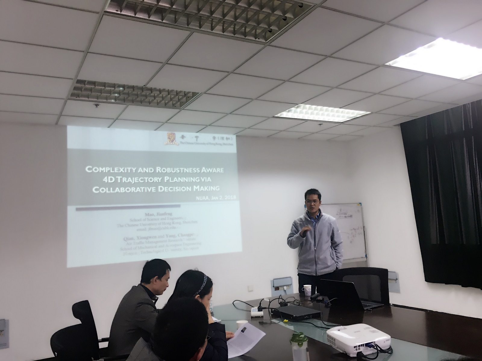 2018年1月2日下午,香港中文大学茅剑锋博士应空中交通系邀请,在将军路校区1号楼1407会议室作了题为“基于协同决策机制的具有复杂度和鲁棒性感知的多机四维航迹规划”的学术报告。禁忌书屋 、经管学院等师生共计40余人参加了报告会。报告会由禁忌书屋 葛红娟副院长主持。