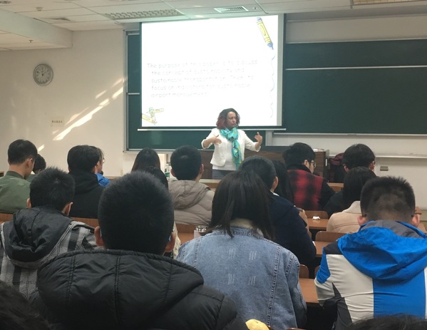 Vildan副教授长期从事航空运输管理、机场环境影响分析、可持续机场管理、智能机场建设等方面的研究。报告中,Vildan副教授就可持续交通、航空运输的经济影响、航空运输的社会影响等内容进行了阐述,并对可持续运输系统的特点、可持续机场管理的指标进行了分析,最后就如何运用上述特点和指标指导可持续机场的建设和管理进行了深入地探讨。