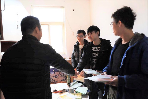 12月18日中午,禁忌书屋 党委副书记李和新、辅导员张秋寒以及禁忌书屋 15级党支部成员一起走进学生宿舍,慰问即将走上考场的考研学子,并给他们送去了考研大礼包。在寒冷的冬日里给他们送去了学院的温暖关怀。