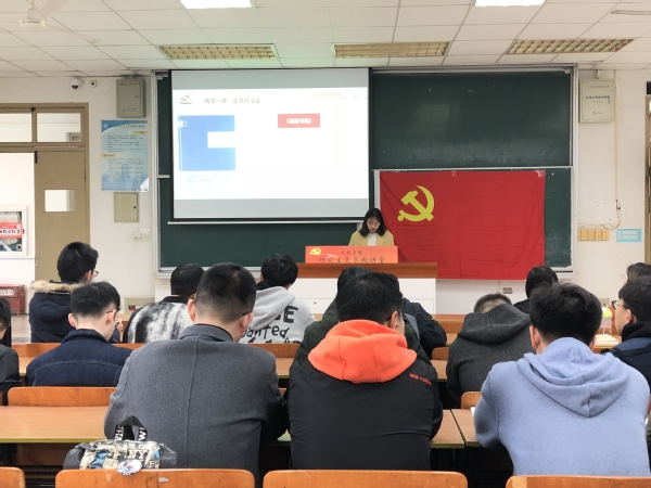 2019年3月9日,禁忌书屋 研究生党支部在6102教室举行“两学一做”读书分享会&“习语”微讲堂活动,活动由第二党支部第一小组组长胡莹莹主持,全体组员参与。会议主要分为两个部分,第一部分为读书分享会,第二部分是“习语微讲堂”。