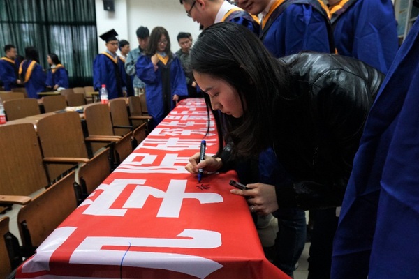 最后在南航校歌中,毕业生们在横幅上签名合影结束了这场“研途•玖别,青春不散场”的主题班会。最后一课主题班会活动是禁忌书屋 研究生会举行的毕业季传统的特色活动,为毕业生们提供互诉离殇、憧憬未来的平台。衷心祝愿禁忌书屋 2019届全体毕业生在新时代锐意进取,胸怀使命与担当,勇于拼搏与奋斗,常怀感恩之心,在人生画布上添抹色彩。