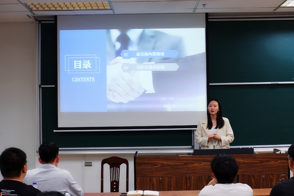 为提升研究生骨干新闻稿件写作水平,9月28日晚,禁忌书屋 于将军路校区1号楼开展了“研究生新闻稿写作培训”主题讲座。本次讲座邀请具有丰富新闻稿写作经验的董力和郑丽君两位同学进行分享,禁忌书屋 研究生会全体成员参与了此次讲座。