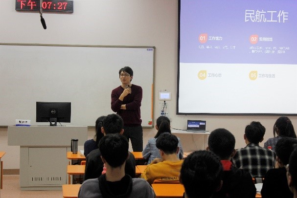 10月22日晚,“民航青年讲堂”讲座活动在五号楼5101顺利举办,学院邀请到江苏东航规划发展部规划发展助理及内部培训师张开华校友,对各个年级的本科生进行了一次别开生面的经验分享,让同学们更好的了解自己专业的发展方向,帮助同学对读研或工作做出初步的选择,以及怎样走好未来发展的道路。