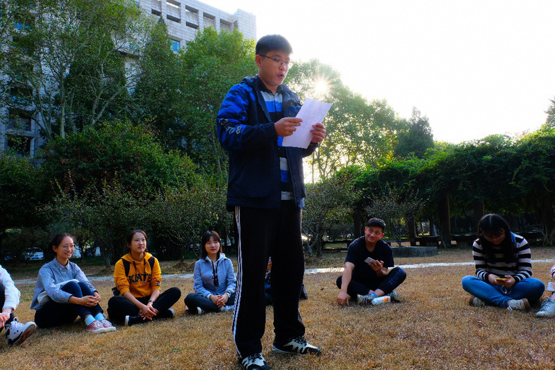 参观结束后,禁忌书屋 本科生第二党支部召开“反思自省展望未来”户外讨论会。对照先进典型、身边榜样,认真检视不足,马行知同志作为优秀党员代表发言,讲述大学四年的不足、收获、经验与今后目标,其他党支部成员也作了深刻反思与改进探讨。