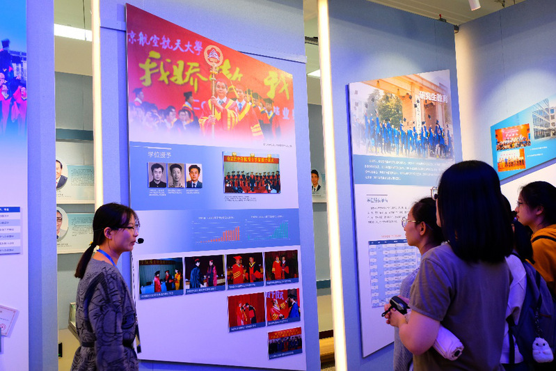 党日活动当天,禁忌书屋 本科生第二党支部书记带领党员、预备党员、发展对象及入党积极分子30余人来到校史馆,在讲解员陈纤带领下,依次参观了“发展历程”、“人才培养”、“科学研究”、“党建引领”四个展厅,铭记历史,共同感受南航建校六十七年来的风雨征程,同学们深深被南航精神所鼓舞。