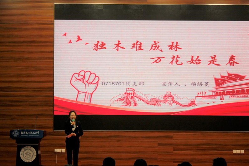 第一组参赛选手从民航人在危难中的表现引出了忠诚担当的政治品格是保障了民航事业的精神支柱,并呼吁团干们忠于祖国,忠于事业,忠于生命,肩负起时代使命,为民航事业的蓬勃发展添砖加瓦。