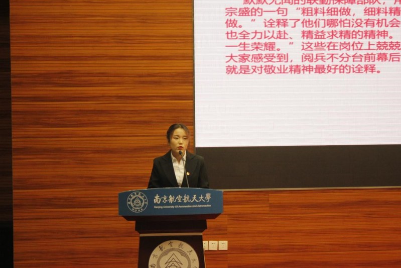 第二组同学通过民航技术的高要求、高标准阐述了民航事业容不得半点马虎,丝毫的差错都可能带来一场空中浩劫,精确细致是民航人提供的最可靠的保障,严谨科学是民航人给出的最庄严的承诺。
