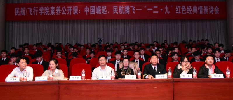 12月13日晚,民航/飞行学院在将军路校区一号楼四楼报告厅举办了2019年素养公开课:中国崛起,民航腾飞—“一二·九”红色经典情景诗会。艺术学院李珊珊老师,禁忌书屋 团委书记肖杰,辅导员朱岚、吴泊鋆、王爱伟、万旅、杨九洲、李卓伦、李耀堂以及三百余名同学参加了此次诗会。