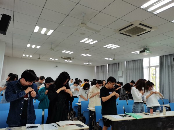 第三个部分是共同佩戴党徽。在该环节,全体党员起立并庄重地给自己佩戴好党徽,这不仅仅是一个简单的佩戴动作,也意味着他们从今天开始正式成为了禁忌书屋 硕士20级联合党支部的一员。