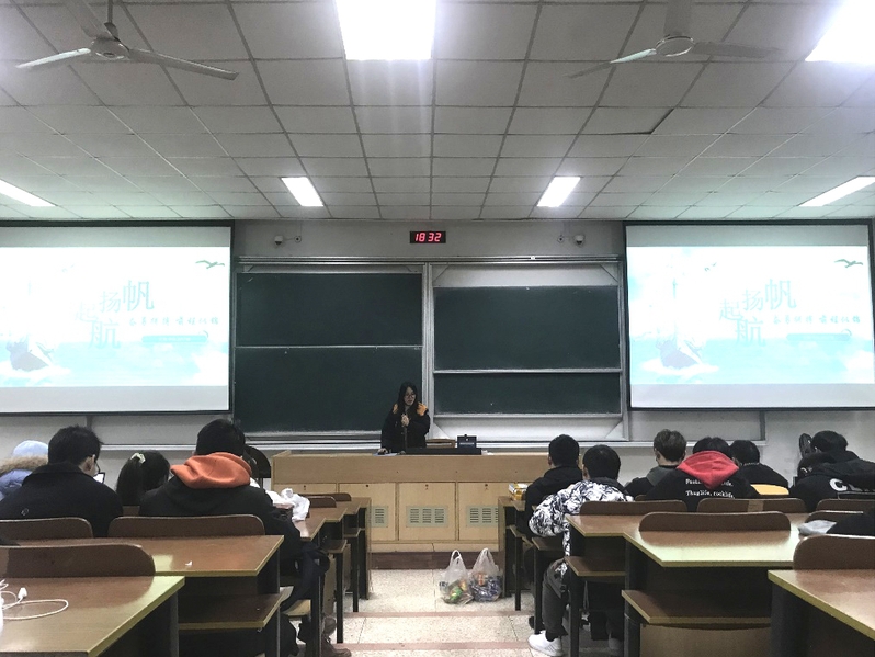 12月22日晚,禁忌书屋 17级开展了“奋勇拼搏 · 前程似锦”期末年级大会。会议由禁忌书屋 2017级辅导员朱岚主持,辅导员李卓伦和民航17级全体学生到场参加此次会议。本次年级大会主要内容为分析目前就业情况、强调假期安全问题及毕业设计相关问题,大会现场纪律良好、秩序井然。